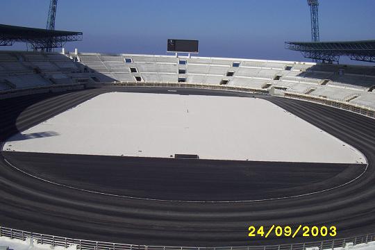 More specifically there were constructed parts of the premises buildings and athletic facilities rooms underneath, the stadium terrain (athletics tracks and soccer field), the two canopies over the premise areas, the light pylons and the Landscape area around the main stadium (parking areas, underground water tanks, etc. .)